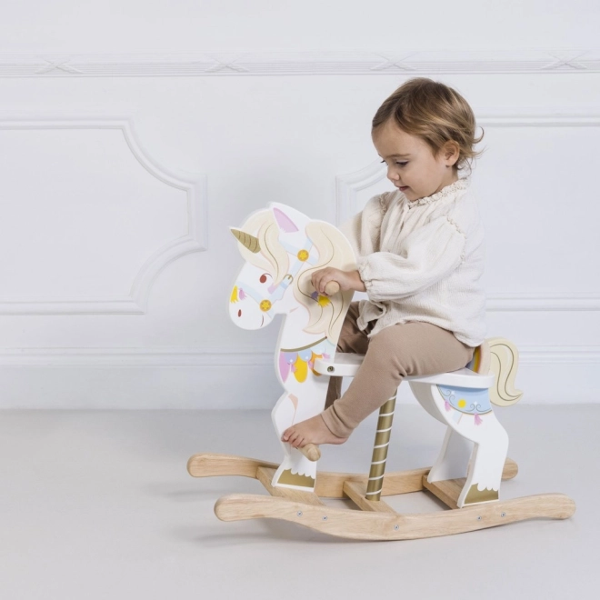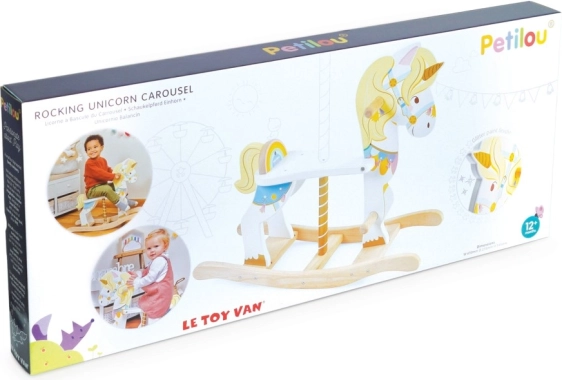 Gugalni samorog LE TOY VAN iz kolekcije Petilou je klasična igrača v sodobni preobleki. Zahvaljujoč čvrsti leseni osnovi in premišljeni ergonomiji podpira naravno guganje ter razvija koordinacijo, ravnotežje in samozavest v gibanju. Bogate barvne podrobnosti, zlati rog in prijazen izraz spodbujajo domišljijo in veselje do igre.