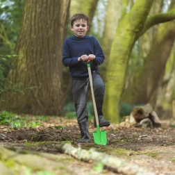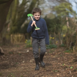 Gladko, robustno držalo iz naravnega lesa udobno leži v roki in pomaga otrokom kopati z več samozavesti in manj napora.