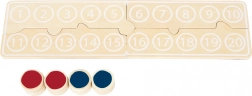 Barvni žetoni in pregledna tabla s številkami 1–20 omogočajo otrokom enostavno sestavljanje primerov in opazovanje rezultatov pred očmi.