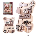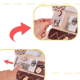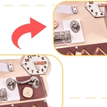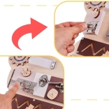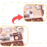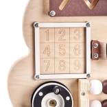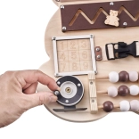 Da bi senzorična deska pritegnila otrokovo pozornost in ga spodbudila k igri, ima tabla obliko prikupnega medvedka in uporabljene barve so prijetne in privlačne za oči! Na deski je veliko elementov od najpreprostejših dejavnosti, kot je premikanje kroglic na števcu, do bolj zapletenih, kot je odpiranje ključavnice s ključem!