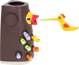 Igra polna zabave in izobraževanja za otroke od 3 let. S pomočjo magnetnega kljuna pomagajte ptici ujeti raznolike črve, ki se skrivajo v barvitem drevesu!