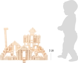 Ta komplet lesenih kock Small Foot vsebuje širok spekter različnih oblik gradbenih elementov, ki otrokom omogočajo ustvarjanje raznolikih struktur in razvijajo njihovo ustvarjalnost. Kocke so narejene iz neobdelanega gladkega lesa, kar zagotavlja njihovo varnost za otroke od 12 mesecev naprej.