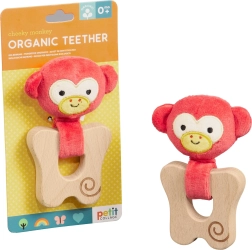 Grizalo z glavico vesele opičke prinaša dojenčku tolažbo in zabavo. Tekstilni del iz organskega bombaža je prijeten na dotik, lesen obroč iz FSC certificiranega bukovega lesa je gladek in trpežen. Ergonomska oblika podpira razvoj fine motorike in varen oprijem.