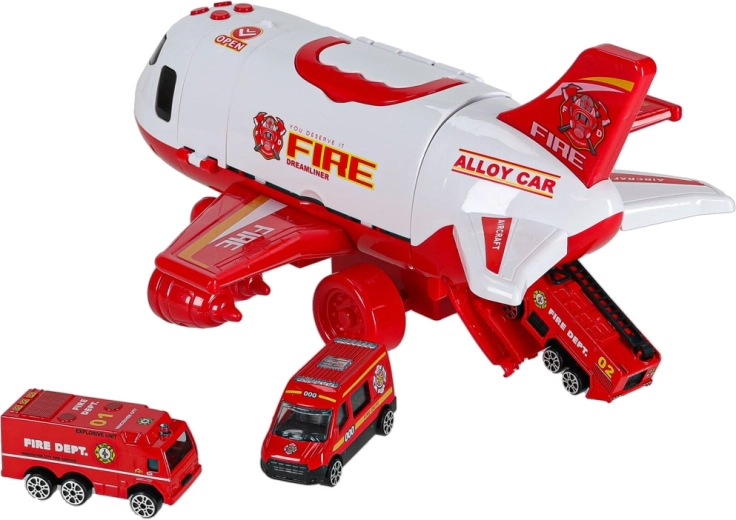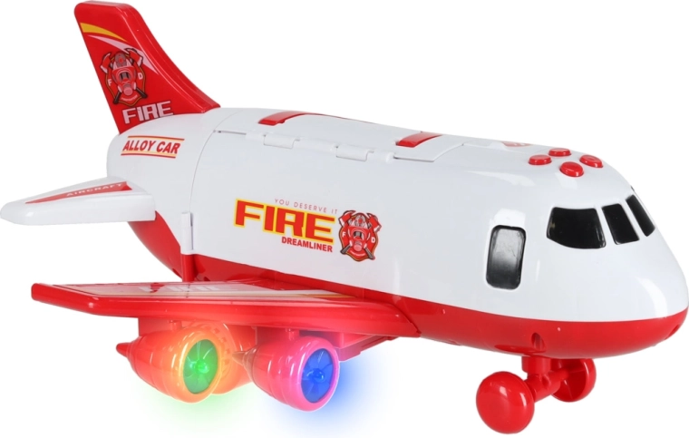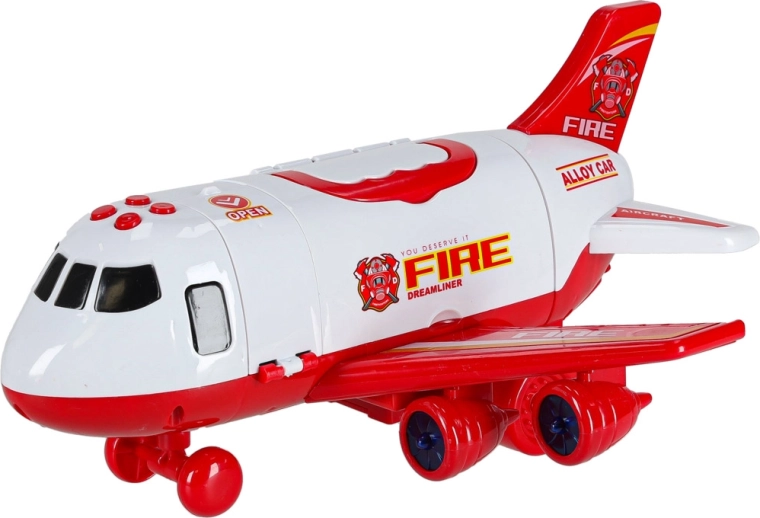 Veliko gasilsko transportno letalo prinaša akcijsko zabavo, polno reševalnih misij. Zahvaljujoč zadnjemu odpiranju z rampo in stranskemu vstopu je nalaganje avtomobilčkov in opreme enostavno. Za pravo vzdušje poskrbijo svetlobni LED učinki in realistični zvočni signali, ki jih upravljajo 4 gumbi. Priloženi so 3× gasilski avtomobil in 7 prometnih znakov, vse se prilega v notranjost letala.