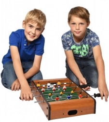 Ta manjši namizni nogomet je idealna izbira za vse ljubitelje nogometa, ki želijo uživati v zabavi tudi doma. Izdelan je iz barvnega in lakiranega lesa, kar zagotavlja dolgo življenjsko dobo. Vsaka ekipa ima 6 nogometašev, nameščenih na dveh palicah, ki omogočajo enostavno upravljanje in simulacijo prave nogometne tekme.