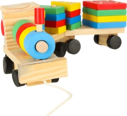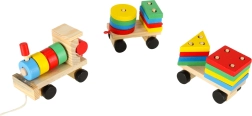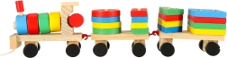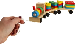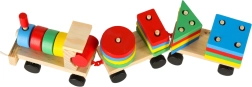 Prisrčen leseni vlak z lokomotivo in dvema vagončkoma je odlična igrača za otroke od 3 let. Vsebuje barvne kocke in sortirnik za urjenje motorike, učenje oblik in barv ter razvoj logičnega mišljenja. Vlak ima premična kolesa in vrvico za vlečenje, zato bodo otroci uživali v veliko gibanja in ustvarjalne igre.