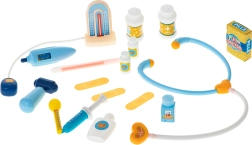 Zdravniški komplet vsebuje vse potrebne pripomočke za igro zdravnika, kot so stetoskop, termometer, injekcijska brizga in drugi.