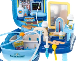 Zdravniški komplet za otroke v praktičnem kovčku, ki vsakšno igro spremeni v zdravniško ordinacijo. Ustvarjalna igrača, ki pomaga otrokom naučiti se osnovnih zdravniških pripomočkov in postopkov. Zahvaljujoč prenosnemu kovčku se lahko otroci igrajo zdravnika doma ali pri prijateljih.