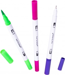 Tanek liner 0,4 mm za natančne konture in pisavo, širša konica 1–2 mm za hitro barvanje in izrazite poteze – vse v enem markerju.