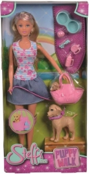 Izberite punčko Steffi Love in se potopite v svet zabave, stila in ljubezni do živali. Ta punčka je oblečena v modni cvetlični vrh in modro krilo ter dopolnjena z belimi gležnjarji in sončnimi očali.