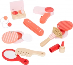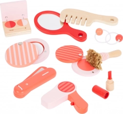 Ta kozmetični kovček za otroke znamke Small Foot je idealen za male umetnike, ki radi igrajo vloge in se želijo počutiti kot odrasli. Set vsebuje 10 različnih kozmetičnih pripomočkov izdelanih iz kakovostnega lesa.