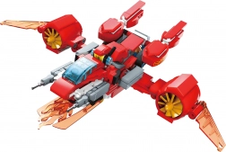 Futuristični rdeči lovec s podrobnim kokpitom, motorji in »ognjenimi« elementi doda vsaki misiji hitrost in napetost.