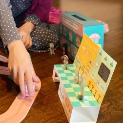 Izdelano z mislijo na planet – uporabljeni karton, papir in les imajo FSC certifikat, embalaža je popolnoma brez plastike. Set spodbuja fino motoriko, domišljijo in igranje vlog za otroke od 3 let.