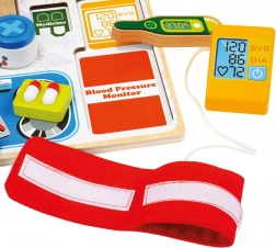 Otroci se na zabaven način učijo prepoznavati stetoskop, termometer, injekcijo in druge pripomočke ter jih pravilno vstavljati na svoja mesta.