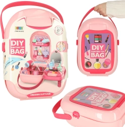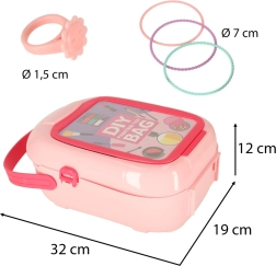 Kozmetični set v prenosnem kovčku za male frajle in bodoče frizerje prinaša veliko dodatkov za ustvarjalno igro: sušilnik za lase, glavniček, ogledalce, sponke, prstančke, zapestnice ter barvne stekleničke. Kovček ima prozorno okence za personalizacijo – vstavite sliko ali ime otroka in ustvarite edinstven komplet za igro vlog. Odličen za razvoj fine motorike in socialnih veščin. Ne vsebuje prave kozmetike.