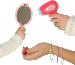 Otroški plastični sušilnik za lase in prikupno ogledalce spodbujata domišljijo in dodajata igri avtentičen občutek – varno in brez prave kozmetike.