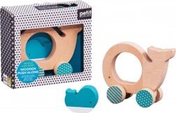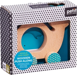 Ta stilska in varna lesena igrača otrokom prinaša veselje do gibanja in odkrivanja. Zaobljene oblike se odlično prilegajo malim rokam, na sredini kitovega telesa je odprtina s prosto nameščeno figurico mladiča, ki spodbuja interaktivno igro ter izboljšuje koordinacijo oko–roka.