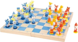 Odkrijte šah, ki otroke resnično navduši! Masivna lesena plošča z modro-naravnimi polji in igrivimi figurami izstopa po vzdržljivosti in preglednosti. Zaradi zložljive zasnove služi tudi kot kazeta za varno shranjevanje delov – vse imate na kupu in pripravljeno za hitro partijo.