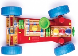 Dovršena igrača, ki neposredno spodbuja otroke in njihove starše k odkrivanju, kako deluje pravo avtomobilsko vozilo. Vse osnovne mehanske funkcije so tu natančno reproducirane. Pri motorju bodo otroci videli, kako delujejo valji in ročična gred ter kako so povezani s menjalnikom, ki ima funkcionalno prestavljanje s 3 položaji (nevtralno, 1. in 2. prestava). Diferencial prenaša gibanje na zadnja kolesa in omogoča, da se vrtijo neodvisno drug od drugega. Vse mehanske dele je mogoče preprosto pritrditi na podvozje in jih enako enostavno sprostiti s posebnimi vzmetenimi rumenimi gumbi. Volan je funkcionalen in omogoča avtomobilu zavijanje ali vožnjo na parkirišče. Otroci lahko avto spredaj in zadaj dvignejo s posebnimi vozički, z vrtenjem ročice na sprednjem vozičku pa spravijo v pogon celoten mehanizem. Pri prestavljanju posameznih prestav bodo videli, kako se spreminja hitrost vrtenja koles in valjev. Ob vklopu nevtralnega položaja bodo opazili tudi, kako se motor in diferencial medsebojno odklopita. Primerno za otroke od 3 let. Glavne lastnosti: reproducirane osnovne mehanske funkcije, funkcionalen volan in mehanski deli, za otroke od 3 let