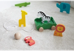 Odkrijte čudovit svet naše lesene igrače na vrvici z safari živalmi, ki otrokom ponuja ne le zabavo, temveč tudi izobraževalno vrednost. S kombinacijo igre in mehanizma vlečenja otroci pridobijo različne spretnosti kot so groba motorika in koordinacija gibov.