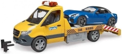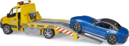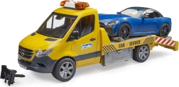 Vlečno vozilo BRUDER na osnovi MB Sprinter navduši z dovršeno izdelavo in bogato funkcionalno opremo. Otroke razveselijo rotacijska luč s svetlobo in zvokom, realistična rampa z izvlečnimi drsniki in zapornimi klini ter odpirajoča se vrata in stranske omarice. Del kompleta je športni kabriolet z odstranljivo streho in zamenljivimi kolesi.