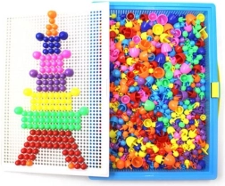 Ta igrača je priljubljena pri generacijah otrok in nostalgično obujena pri odraslih. Enostavna zasnova, sestavljena iz barvnih plastičnih gobic različnih velikosti in perforirane plošče za njihovo vstavljanje. Vse je shranjeno v prenosljivem kovčku, da lahko vaš otrok vzame svojo najljubšo igračo kamorkoli.