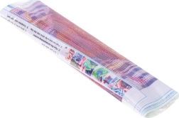 Set vključuje potiskano platno z lepilno plastjo, barvne kamenčke v tridesetih odtenkih in kakovostna orodja za aplikacijo. Zahvaljujoč preprostemu sistemu označevanja po črkah – vsak del platna ustreza določeni barvi kamenčkov – je ustvarjanje mozaične slike intuitivno in brez zapletov.