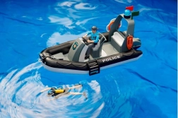 Policejski igračni čoln otrokom ponuja ure zabave na vodi. Z dvema figurama, policistom in potapljačem, je ta čoln idealen za ustvarjalne igre in simulacijo policijskih scenarijev.