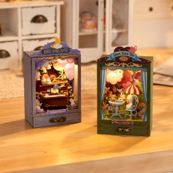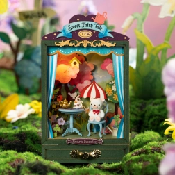 Mini gledališče Čajni trenutek vam ponuja magično prizorišče za vaše figurice. Ta edinstveni kabinet diorama vam omogoča ustvariti očarljivo vzdušje zahvaljujoč integrirani topli svetlobi in praktičnim dodatkom.