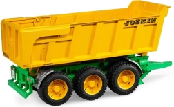 Podrobno izdelana nagibna prikolica JOSKIN znamke BRUDER prinaša otrokom realistično igro na kmetiji ali gradbišču. Zahvaljujoč visokodvižnemu kesonu, upravljanemu s teleskopskim drogom, zlahka razložite tovor, medtem ko se samodejno odpirajoča zadnja vrata poskrbijo za gladko izsipanje. Stabilnost zagotavlja trososna zasnova in praktična nagibna oporna noga za varno parkiranje.