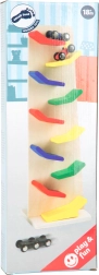 Ta kakovosten leseni kaskadni stolp ponuja otrokom neskončno mero akcijske zabave. Dovolj je, da položite majhen zgibni avtomobilček na vrh in opazujete, kako se po posameznih rampah spušča navzdol ter ustvarja značilni »klap klap«. Igra tako spodbuja vid, sluh ter koordinacijo rok in oči.