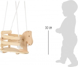 Lesena gugalnica v obliki konjička je odlična izbira za prvo guganje. Natančno obdelan masiven les v naravni izvedbi je vzdržljiv in hkrati pripravljen za morebitno barvno dodelavo po vaši domišljiji. Povišana ograjica, naslon za hrbet in stranska ročaja zagotavljajo največjo stabilnost in varnost tudi za najmlajše jezdece.