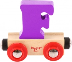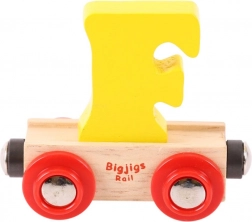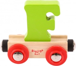 Vagon Bigjigs Rail s črko F je del barvite in ustvarjalne serije lesenih vlakov. Vsaka črka je snemljiva in zamenljiva za drugo, kar otrokom omogoča ustvarjanje svojih imen ali sporočil. Izobraževalna igrača, ki spodbuja razvoj domišljije, spretnosti in koordinacije, je izdelana iz kakovostnih, odgovorno pridobljenih naravnih materialov. Magnetne spojke zagotavljajo združljivost z drugimi vagoni in lokomotivami Bigjigs Rail ter drugimi lesenimi železniškimi sistemi.