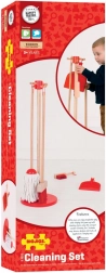 Otroški čistilni set v rdeči barvi spodbuja domiselno igro in otroke naravno vodi k učenju domačih opravil. Zahvaljujoč trdni leseni konstrukciji in premišljeno zasnovanemu stojalu imajo vsi deli svoje mesto, zato je pospravljanje po igri prav tako enostavno kot sama zabava.