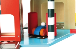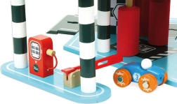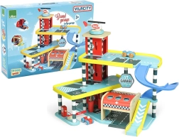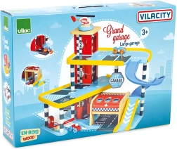 Odkrijte zabavo z leseno garažo VILAC Vilacity! Ta velika večnadstropna garaža ponuja delujoče dvigalo, zložljiva vrata, parkirno zapornico, bencinski avtomat in ščetke za pranje. Priložena so 2 avtomobilčka in helikopter, popolna združljivost s kolekcijo VILACITY ter okolju prijazna izdelava.