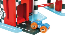 Velika lesena garaža VILAC Vilacity je popolno središče mestnega prometa za vse male dirkače. Zahvaljujoč premišljenim mehanskim podrobnostim, kot so delujoče dvigalo, zapornica in avtopralnica, otroci razvijajo fino motoriko, domišljijo in logično mišljenje. Set vsebuje dva avtomobilčka in helikopter, zato se igra lahko začne takoj po sestavi.