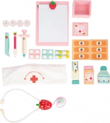Ta kakovosten leseni zdravniški kovček Small Foot Isabel je idealen za otroške igre poklicev. Set vsebuje 24 kosov dodatkov, vključno s tekstilnim trakom z rdečim križem in barvitimi medicinskimi pripomočki z jagodnim motivom, ki razveselijo vsakega otroka.