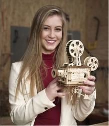 Sestavite svoj mehanski filmski projektor iz naravnega lesa, ki resnično predvaja črno-beli film. Model ROKR ponuja ročni pogon s kljuko, laserjem natančno izrezane dele in montažo brez lepila. Odlična izobraževalna dekoracija, ki razvija tehnično razmišljanje in navduši ljubitelje retro dizajna ter kinematografije.