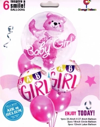 Stajliš komplet šestih rožnatih balonov polepša vsak baby shower, dobrodošlico dojenčku in rojstni dan deklice. Vsebuje balon z medvedkom in napisom »Baby Girl«, dva balona z girlando »Baby Girl« ter tri enobarvne rožnate balone. Napihnete jih lahko s helijem ali zrakom in ustvarite očarljivo dekoracijo ter odlično kuliso za spominske fotografije.