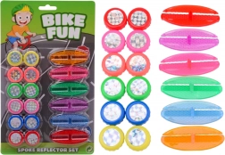 Poživite svoje kolo s stilskimi dodatki! Ta komplet vsebuje 12 veselih okrasnih koleščkov in 6 odsevnikov za boljšo vidljivost in edinstven videz. Kompaktno pakiranje z merami 16 × 26 cm. Izdelek ni igrača.