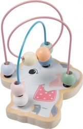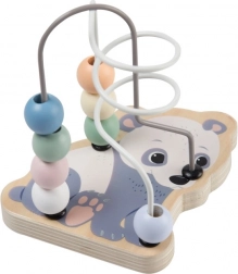 Ta leseni labirint s kroglicami je idealna igrača za prvo raziskovanje sveta. Barvite kroglice se zlahka premikajo po kovinskih zankah ter razvijajo fino motoriko, potrpežljivost in zbranost. Vesel dizajn živalic otroke očara na prvi pogled.