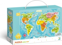 Zabavna in izobraževalna sestavljanka z zemljevidom sveta za otroke. Sestavljanka s 100 koščki pomaga spoznavati posamezne celine in države, pri čemer so opisi v angleščini. Idealna za razvoj fine motorike, logike in jezikovnih veščin. Dimenzija sestavljene slike je približno 64 × 46 cm.