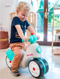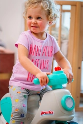 Poganjalec Strada Retro obuja spomine na igrače iz 70. let v novi, moderni preobleki. Idealno za otroke od 1. leta dalje in nosilnost do 25 kg. Zaradi tihih koles, prekritih z elastomerno plastjo, poganjalec nudi gladko in tiho vožnjo, medtem ko široka kolesa zagotavljajo stabilnost.