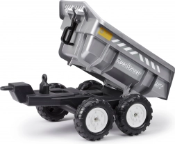 Štirikolesna prikolica »Super dumper« sive barve. Združljiva s traktorji Falk. Izdelano iz kakovostne plastike v Franciji.