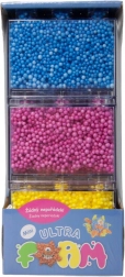 Inovativna nestrupena modelirna masa Ultra Foam v pakiranju treh barv - modre, vijoličaste in rumene. Primerna za otroke od 3 let, razvija domišljijo, ne izsušuje in ne pušča nereda.