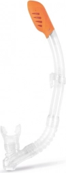 Zgornji pokrov proti škropljenju vode (splash guard) zmanjšuje pronicanje vode v cev, medtem ko živo oranžna konica poveča vidnost na gladini. Praktična sponka/klip za masko drži dihalko v pravilnem položaju. Idealno za rekreativno plavanje in snorkljanje otrok od 8 let.