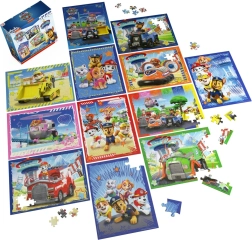 Vsaka sestavljanka razkrije barvito, z akcijo nabito sliko ekipe Tačk na patrulji. Sestavljanke se stopnjujejo po težavnosti za še večji izziv. Vsebina pakiranja: 2 × 100 koščkov, 5 × 24 koščkov, 5 × 48 koščkov. Primerno od 4 let naprej.