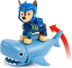 Figurica Chase je oblečena v nov neopren, da je pripravljena na katero koli podvodno reševalno akcijo. Otroci lahko Chasa pritrdijo na hrbet njegovega prijatelja morskega psa in z enostavnim potiskom naprej aktivirajo ugrizni mehanizem. Avtentični detajli in dizajn, navdihnjen s serijo „Tačke na patrulji“, omogočajo otrokom ure zabave in raziskovanja ustvarjalnih reševalnih misij.