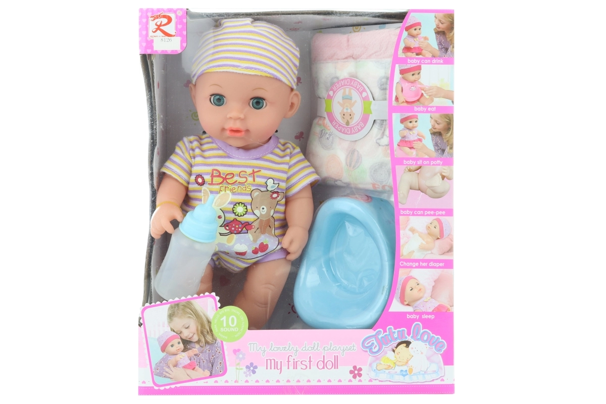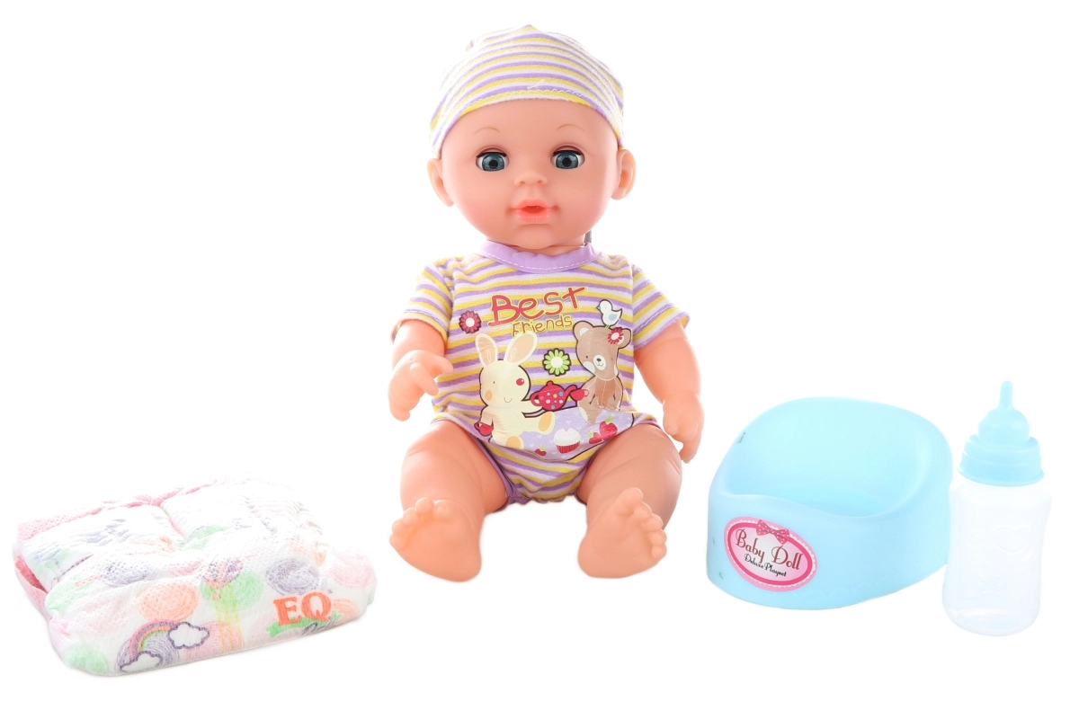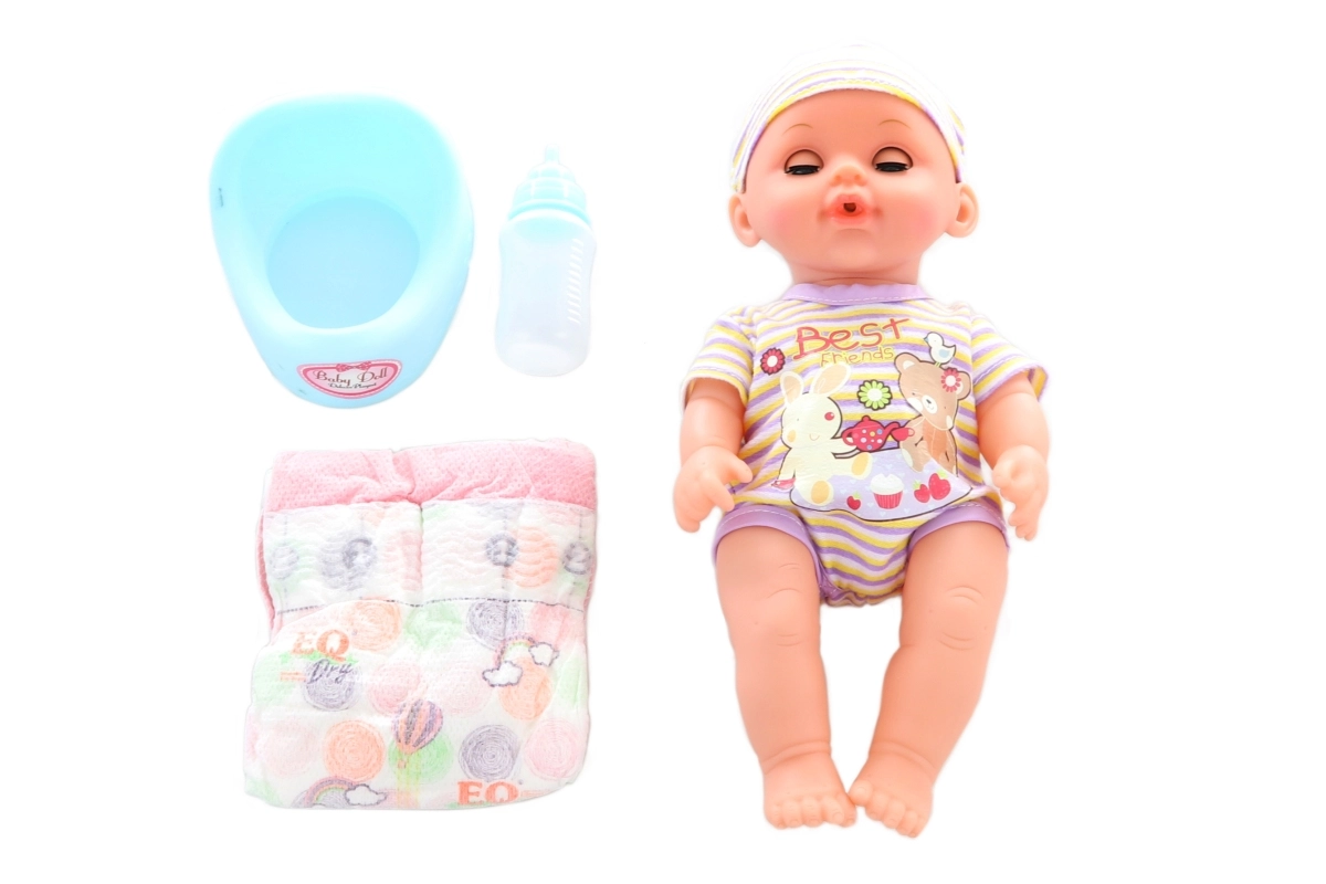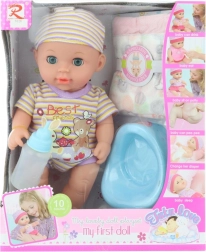Prisrčen interaktivni dojenček bo razveselil vsakega malega skrbnika. Po vstavitvi baterij oddaja realistične zvoke in zna lulati v nočno posodo. Del paketa so plenica, nočna posoda in steklenička za igro hranjenja in previjanja. Odlično za razvoj domišljije in vzgajanje skozi igro otrok od 3 let dalje.