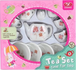 Elegantni porcelanasti čajni set z ljubkimi metuljčki bo razveselil vsako malo gostiteljico. Vsebuje vse potrebno za stilsko čajanko: 4 skodelice s krožnički, čajnik, vrček za mleko in posodico za sladkor. Idealno za otroške čajanke in razvoj socialnih veščin. Primerno od 3 let.
